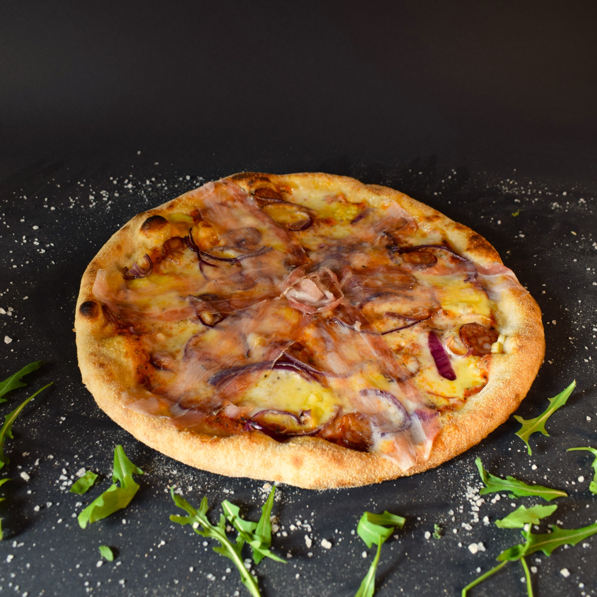 Lucapiero, o pizza cu aluat odihnit, coapta pe vatra, pufoasa la interior, rumena si crocanta la exterior. Sosul de rosii cremos cu o nota usoara de busuioc si oregano. Mozzarella proaspata cu o textura ferma si un gust puternic. Acestea, impreuna cu ingredientele premium bine alese si pregatite cu atentie, creaza un produs delicios cu o combinatie perfecta de arome si texturi.