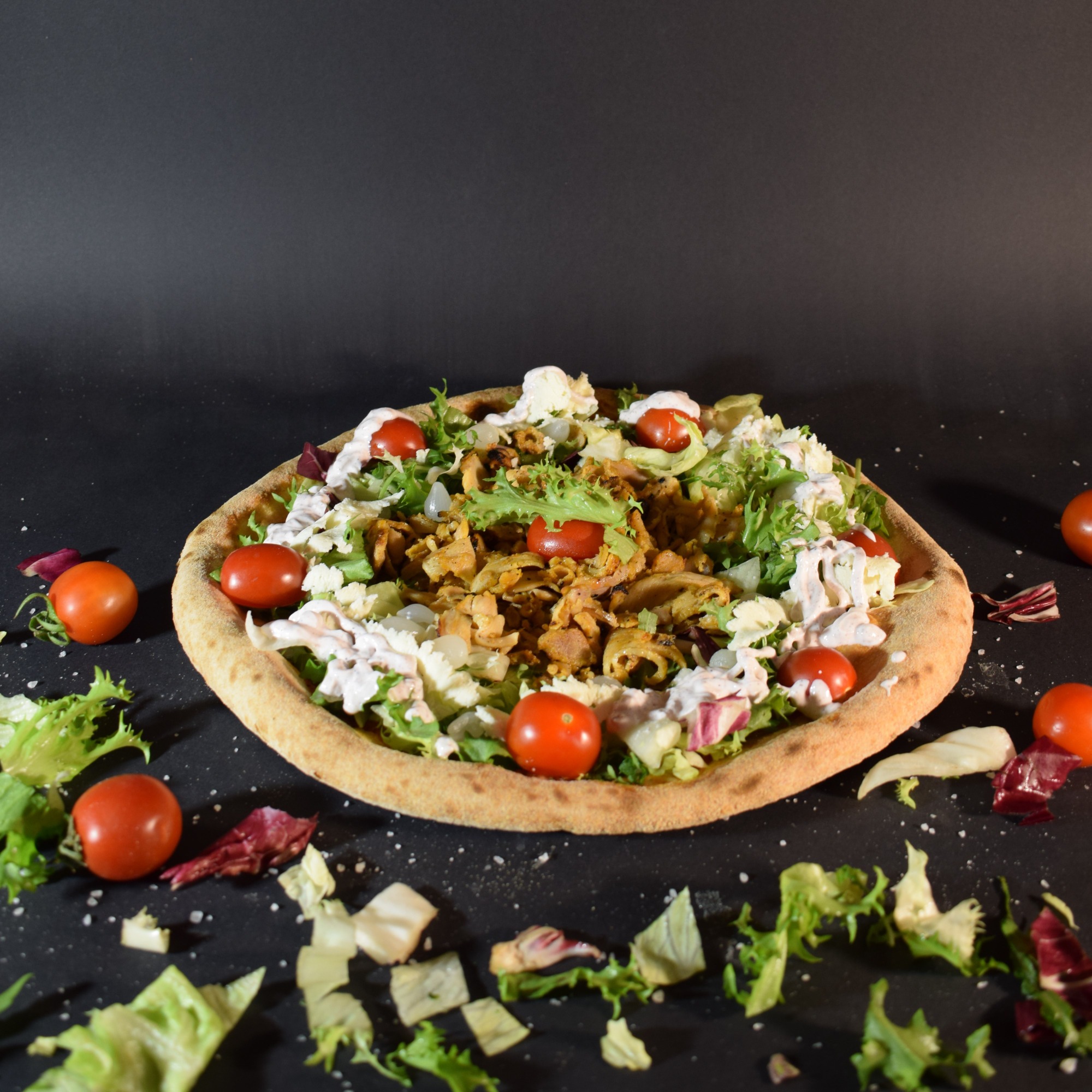 sos de rosii, mozzarella, salam picant, sos bianco -
